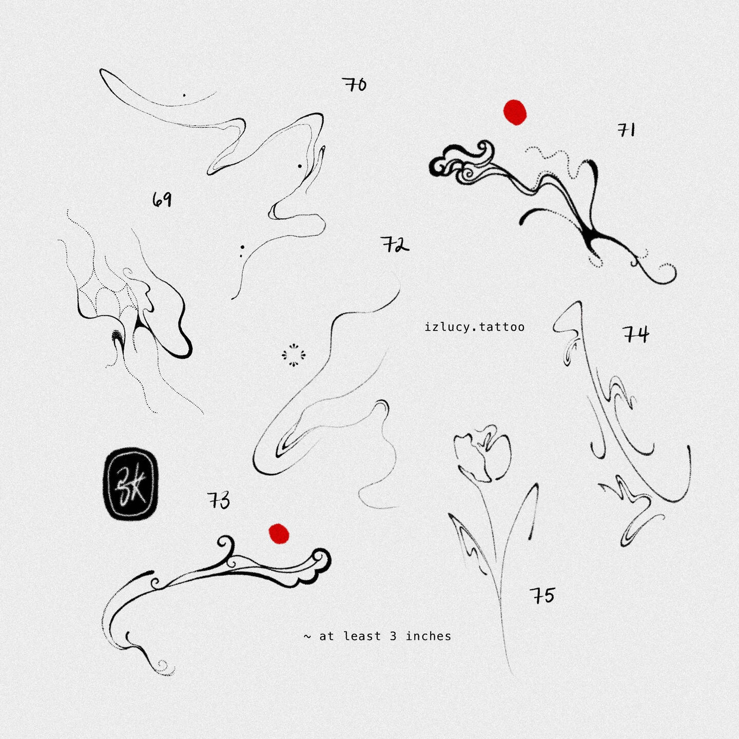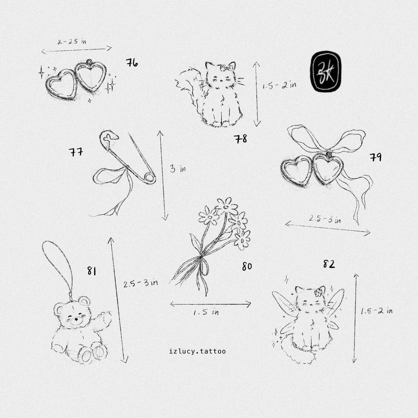 ✨All available flashes are shown below, the numbers listed are what's available to claim. In addition, each piece will have a minimum sizing. Please read the descriptions carefully.✨✨Don't worry! If you see a flash you like that's already been taken, you can still request an alt custom through my booking link✨